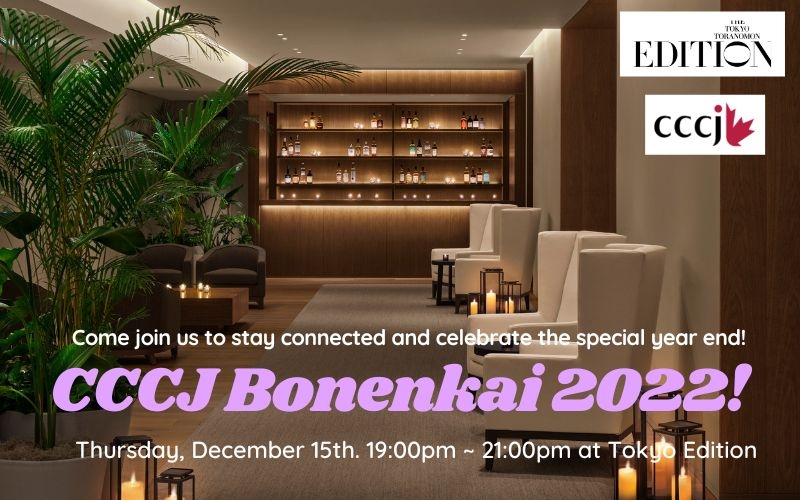 Time flies, it's already the end of the year!!! CCCJ Events Committee is happy to announce the CCCJ Bonenkai 2022 on Thursday, December 15th at the Tokyo EDITION Toranomon, a Corporate member!