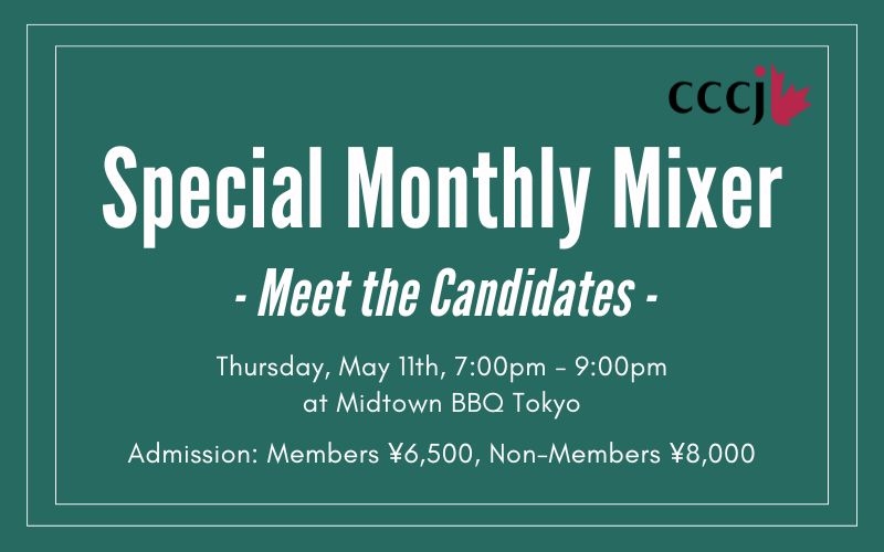The 2023 CCCJ Board of Governors Election is about to get underway. The CCCJ is organizing a special monthly mixer gathering on Thursday, May 11th at Midtown BBQ Tokyo in order to bring Candidates and Members together face-to-face. Come hear from Candidates what they wish to bring to the management of your Chamber and get to know them on a social level over a fine spread of food and drink.