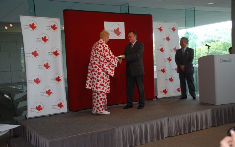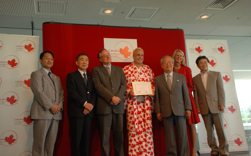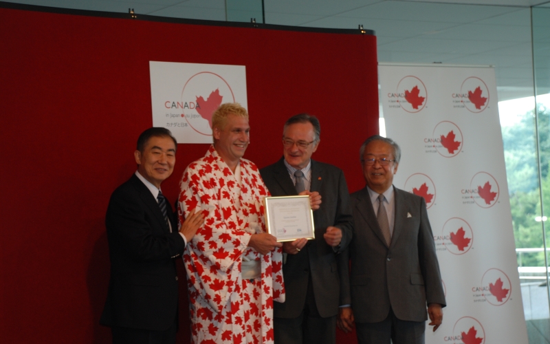 Katsura Bunshi VI himself regaled the audience with the tale of Sunshine's life in Rakugo style, while the CCCJ's own Chair of the Honorary Board of Advisors Ambassador Numata recapped his role in bringing all the parties together. Finally, Sunshine formally took up his role as CCCJ Cultural Ambassador as chamber Chair Wilf Wakely presented the Toronto native with an official certificate of appointment.