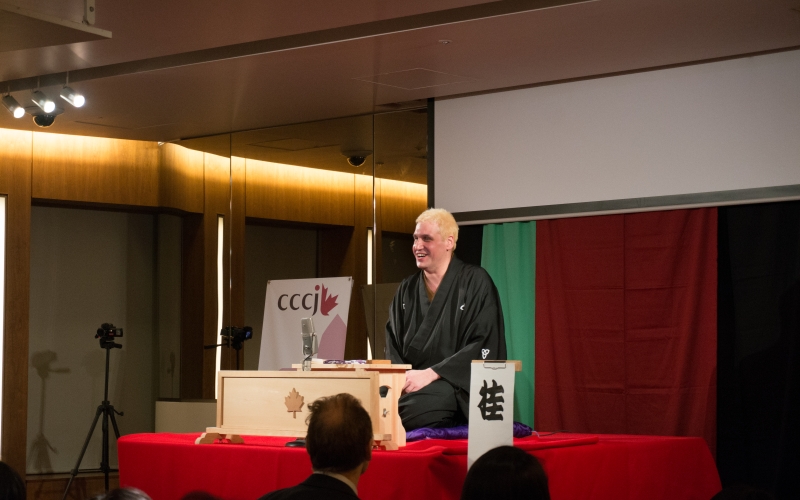 On the evening of 4 June, Canadian Chamber of Commerce in Japan (CCCJ) Cultural Ambassador Rakugo comic storyteller Katsura Sunshine launched his Rakugo World Tour with a sold out English – Japanese Rakugo performance hosted by the CCCJ. The event - which celebrated the 85th anniversary of Japan-Canada Diplomatic Relations – was hosted at the Roppongi Hills Club, where Katsura Sunshine performed his bilingual Rakugo in-front of CCCJ members and friends, as well as Rakugo fans. Summary video produced by Sunshine, below!