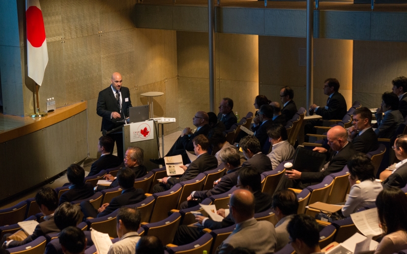 “It is entirely appropriate that this conference on PPP is held in the Canadian Embassy today, since this building is in fact a pure ‘P3 itself” declared CCCJ Chairman, and lawyer Wilf Wakely to over 240 attendees from Japan’s public and business sectors at the Canadian Embassy in Tokyo on May 22. “It was entirely funded, designed, and built and is now maintained by the private sector,” he continued. Wakely was a part of the legal team which put the deal together in the early 1980s long before the modern term “P3” was coined.