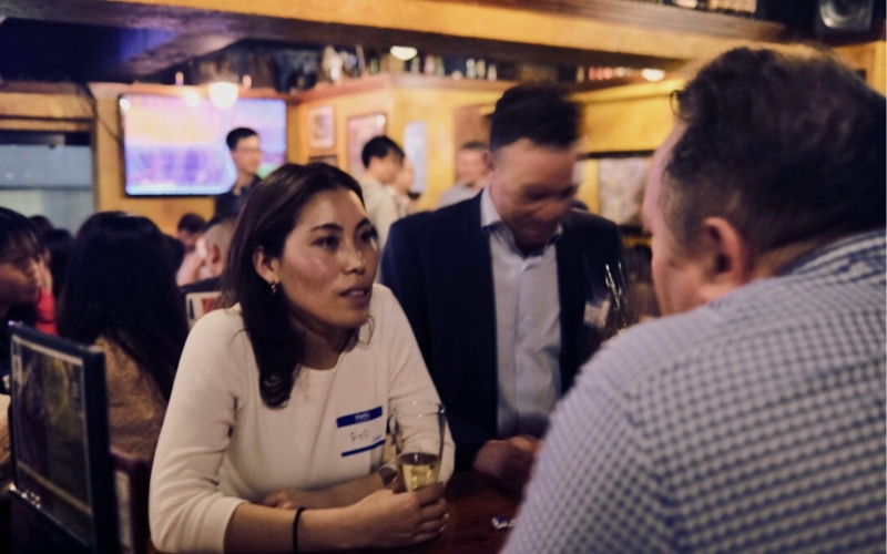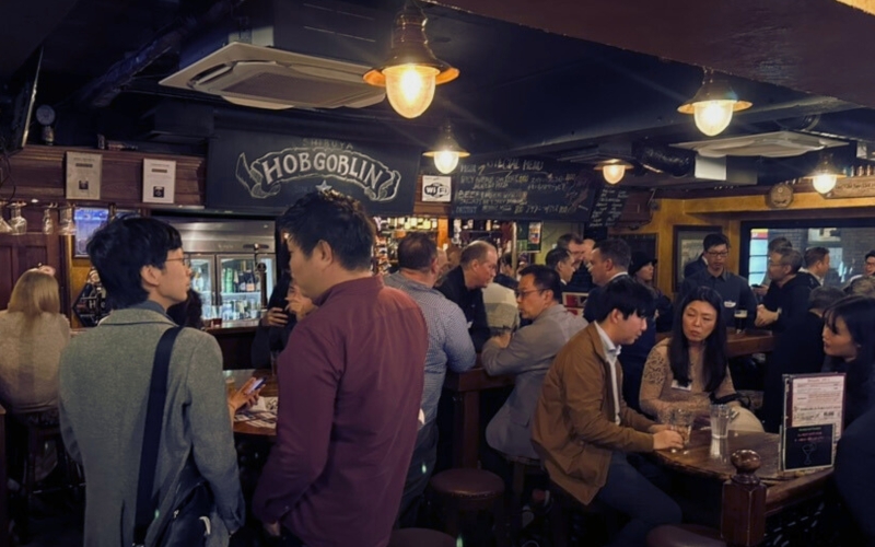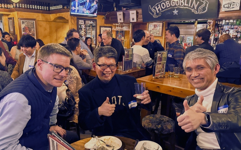 The Alumni Mixer made its triumphant return on Thursday, March 28th, at the cozy Hobgoblin Pub in Shibuya, after a hiatus since 2019. CCCJ welcomed a vibrant crowd, ushering in more than 80 attendees from various industries- marketing, finance, machinery, education, automotive, IT, legal, government and more- all eager to reconnect with fellow alumni. The evening kicked off with Riyo Whitney, Chair of the CCCJ Education committee. The warm atmosphere coupled with a beer in hand, guests mingled with new connections within the business community.