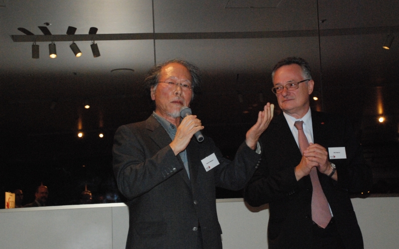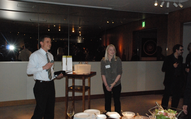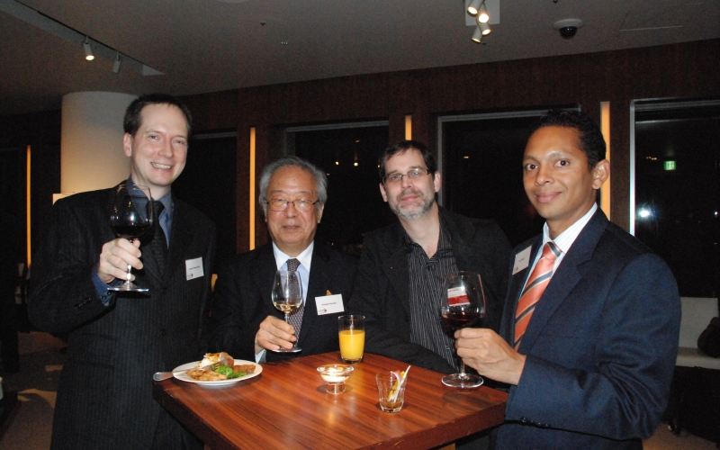 Following October's joint Board & Committee meeting, the CCCJ welcomed over 50 Members and guests to the Canadian Thanksgiving Reception. Although the turkey was quick to go, there was plenty of food and drink to be had for all. Aside from the Thanksgiving effect of the reception, participation by 2 of the CCCJ's Honorary Board of Advisors was made. Both Sadaaki Numata & Yoshio Nakatani made brief presentations on their relations with Canada and desires to strengthen the CCCJ. Congratulations to sparkling wine winners Kazuko Hayashi and lucky Tomomi Fukakusa.