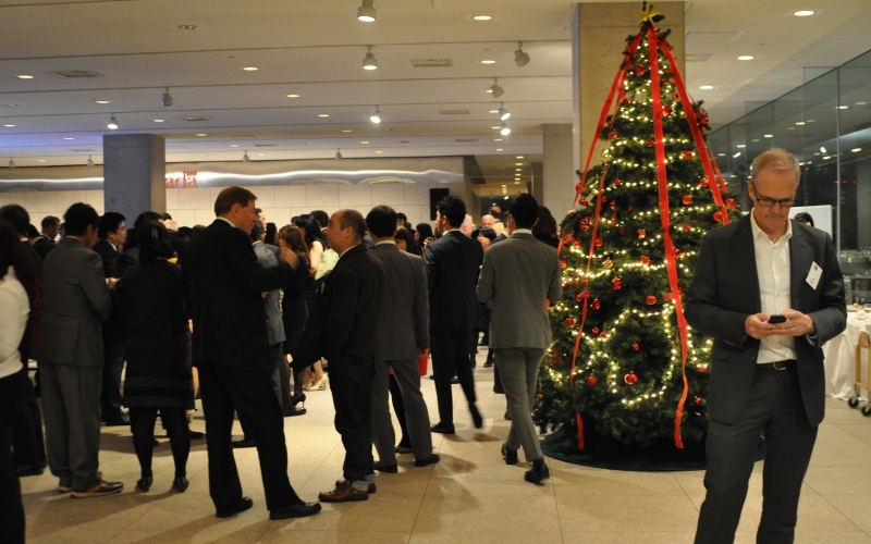 On December 10th, 2015, the Canadian Chamber of Commerce in Japan hosted its 22nd annual end of year networking party, the Joint Chamber Bonenkai, at the Canadian Embassy in Aoyama Itchome. Tickets for the event sold out weeks prior to the registration deadline, providing for a festive crowd of 340 business people affiliated to domestic as well as international chambers of commerce in Japan. Guests this year were treated to one of the finest bonenkai parties on offer in Tokyo, complete with a grand standing buffet, free flow drinks, and prizes.