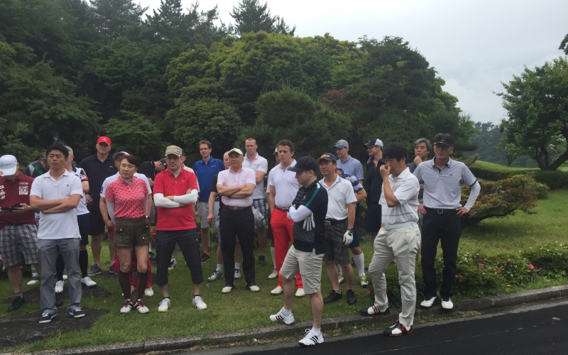 On May 27th, the 15th Annual CCCJ Golf Tournament began in front of the Canadian Embassy with rain pouring down while sleepy-eyed, yet, optimistic golfers straggled onto the bus at 6:30am. This optimism was further tempered with a toast of beer and met with drier skies as we approached Tsutsujigaoka Golf Course.