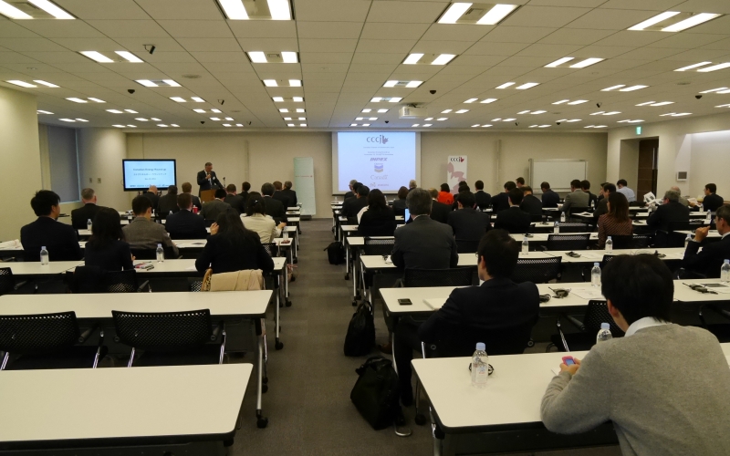 11月25日、在日カナダ商工会議所は,国際石油開発帝石株式会社、シェブロン、TMI総合法律事務所、在日カナダ大使館の寛大なご支援のもと、カナダでのエネルギー業界の時事問題、主に液化天然ガス〔LNG〕についての特別会議を開催致しました。イベントには、先住民達の関与、最近のテクノロジー開発、日本の買い手視点、ブリデッシュコロンビア州LNG所得税の影響に関する、業界問題の専門家をゲストスピーカーとしてお招きしました。この他に、カナダからのスピーカ達による、北米、またはLNGパイプラインが無い場所でのLNG運送と貯蔵法の最新テクノロジーについてのプレゼンテーションも特集しました。