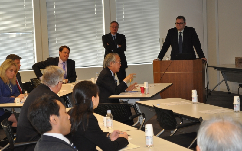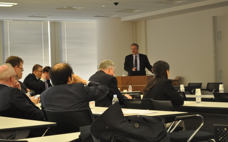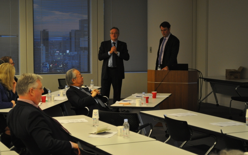 On November 18, 2014 the CCCJ Trade Policy Committee hosted an engagement with Canada’s chief negotiator, Mr. Ian Burney, and Canada’s lead negotiators for Government Procurement and Technical Barriers to Trade, who were in Tokyo for the seventh round of Canada-Japan Economic Partnership Agreement negotiations. Canada and Japan are engaged in trade negotiations both through bilateral EPA* negotiations and the Trans-Pacific Partnership (TPP).