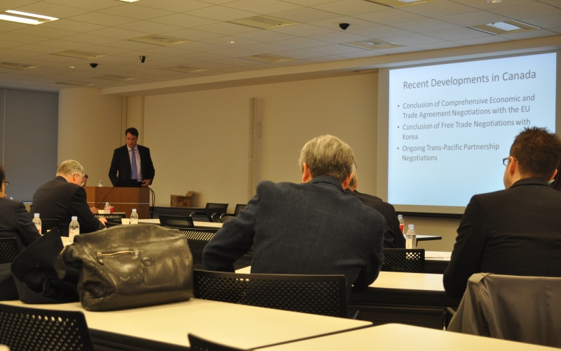 2014年11月18日に、在日カナダ商工会議所貿易政策委員会が、日・カナダ経済連携協定(EPA)交渉第7回会合にあたって訪日中であった、カナダ側のチーフ交渉担当者イアン・バーニー氏と「貿易の技術的障害と政府調達」について交渉をしている主要な方々と説明会を主催致しました。カナダと日本は二か国間日・カナダ経済連携協定(EPA)交渉とTPP(環太平洋連携協定)交渉、両方の交渉をしています。