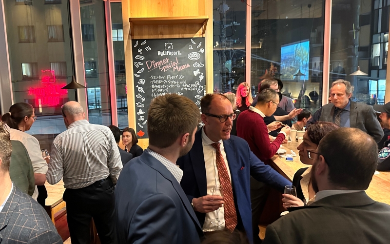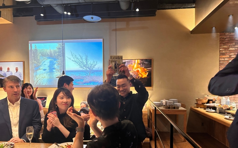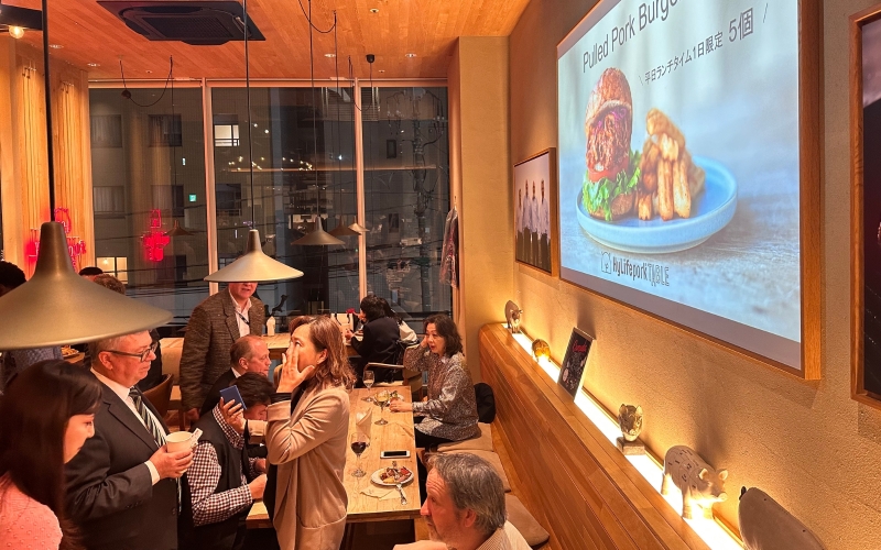 On Tuesday, February 20th, the Canadian Chamber of Commerce held its 2024 Shinnenkai at HyLife Pork Table. Guests were swiftly greeted with their choice of drinks served by attentive HyLife staff and the delicious, appetizing aroma of sizzling pork—so enticing that a solo traveler almost became a CCCJ member just for a slice of the pork.